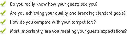 - After the audit checklist has been approved the service is used and/or the property is visited and assessed by an anonymous, unbiased, experienced assessor.